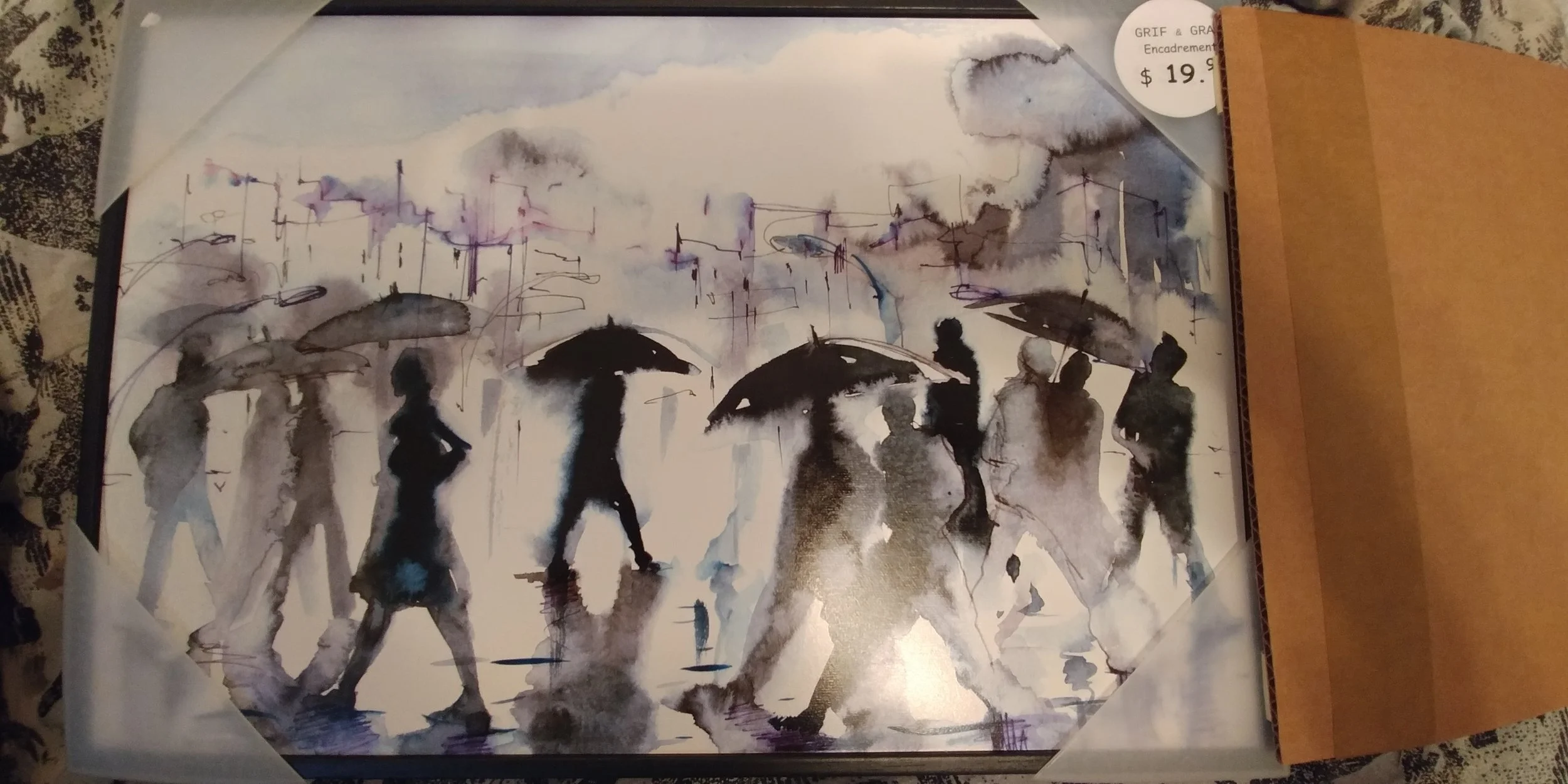 Évidemment, je m’attendais à ce que mon œuvre ne soit pas choisie; le processus de création m’a été plus enrichissant à mon parcours que si elle avait été acquise avec pour seule fonction de se fondre dans un mur. (Je ne m’en souviens plus de l’exact prix, mais je pense que j’ai proposé un prix du genre de 219,99$.)